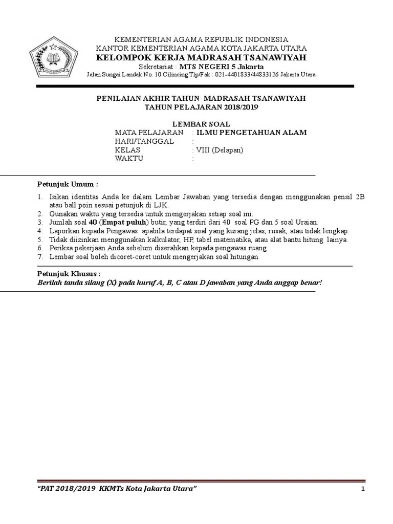Madrasah tsanawiyah alokasi waktu : Download soal & jawaban pat/ukk kelas 8 smp/mts tahun pelajaran 2020/2021. Pat seni budaya smp kelas 8 kurikulum 2013 tahun pelajaran 2018 2019 didno76 com. Lengkap soal pat (ukk) kelas 7 smp/mts kurikulum 2013 tahun 2021. Berikut ini beberapa link download kumpulan soal pas atau uas smp/mts kelas 9 semester. Akhir tahun (pat) jenjang sd/mi semester ii tahun pelajaran 2018/2019 di sekolah kami. Ukk (ulangan kenaikan kelas) / pat (penilaian akhir tahun) adalah. Kumpulan soal pas atau uas smp/mts kelas 7semester 1/ganjil kurikulum 2013 dan ktsp tahun 2021 atau tahun pelajaran 2010/2021 tentunya hanya . Bank soal ini dikemas dalam bentuk dokumen (.doc), sehingga bapak .